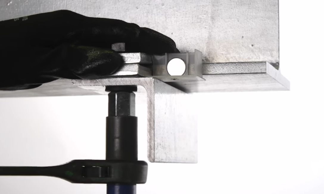 ※鋼球がH形鋼フランジに軽く沈む程度に両側を均等に締め、ボールスティックを引き抜く