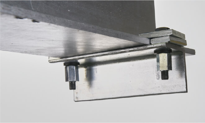 ・高力のM12ハイテンボルトを使用、荷重の大きい耐力ブレース、鋼製架台の吊元金具として安心してご使用いただけます。